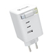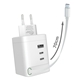 Cargador de pared de muvit for change de 100W con cable retráctil de 70cm y tres puertos de carga. Con su diseño compacto puede llevarte este cargador donde quieras y cargar hasta 4 dispositivos a la vez con el cable retráctil, los dos puertos Tipo-A y el puerto Tipo-C. Además sus 100W de potencia garantizan una carga rápida para smartphones, tablets e incluso ordenadores portátiles, y es que con este cargador puedes cubrir todas las necesidades de carga utilizando un solo enchufe. Gracias a su diseño compacto y elegante en color blanco, se integra perfectamente en cualquier espacio, aportando un toque moderno y funcional.