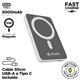 5000 mAh external battery in black colour from muvit for change. This Power Bank has a 1 USB port and the option of magnetic wireless charging compatible with magsafe 15W power and is made with recycled materials of certified origin RCS - RECYCLED CLAIM STANDARD. and li-ion polymer battery. It comes with a 30cm USB-C cable made of recycled TPE.