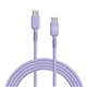 This USB-C to USB-C cable supports 3A fast charging, with a length of 1.2 meters, available in lavender. It is 100% recyclable and made from RCS-certified recycled materials (Recycled Claim Standard), verified by Intertek.