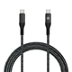 Charge and transfer data between your devices with the new range of cables and chargers from muvit for change, and help make the planet a better place. Charging and data transfer cable with a Type-C to Type-C connector, 5A fast transfer, 1.2m in length, in black, 100% recyclable, and made from certified recycled materials under the RCS, Recycled Claim Standard.