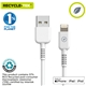 This USB to Lightning MFI-certified cable supports both charging and data transfer. It is compatible with all iPhones from iPhone 5 onward, offers fast 2.4A charging, and is 1.2 meters long. It comes in white and is 100% recyclable. With a patented design, the cable is certified MFI and CRS, confirming it is both recyclable and made with recycled materials. Charge your devices while helping the environment and receive a free cable organizer as a bonus!