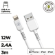 This USB to Lightning MFI-certified cable supports both charging and data transfer. It is compatible with all iPhones from iPhone 5 onward, offers fast 2.4A charging, and has an extended 3-meter length. Available in white and 100% recyclable.
