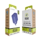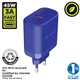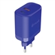 Wall charger with European plug in a cheerful blue colour. It has 1 USB 18W + 1 Type C PD 45W of power for fast charging and is made with materials of certified origin RCS - RECYCLED CLAIM STANDARD and 100% recyclable (cable not included).
