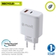 The muvit for change quick wall charger, with dual USB A and USB Type-C input, is made from 100% recycled plastic, compromising neither the quality nor the appearance of our eco-sustainable charging range. But that's not all! We have also taken care to design eco-responsible packaging, using recycled and recyclable cardboard to avoid using non-organic plastics and glues.
