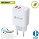 The charger casing contains 100% post-consumer recycled polycarbonate (PC), certified by Intertek M06698.