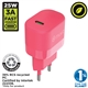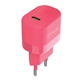 Wall charger with European plug in a cheerful magenta colour. It has 1 Type C PD 25W power for fast charging and is made of 100% recyclable RCS - RECYCLED CLAIM STANDARD certified materials (cable not included).